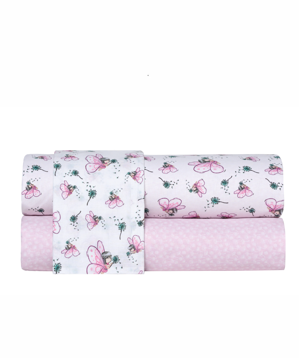 Σετ 3 τεμαχίων σεντόνια κούνιας (κατωσέντονο, πανωσέντονο και μαξιλαροθήκη), κατασκευασμένα με ύφασμα από 100% βαμβακερά νήματα πυκνότητας 150 κλωστών (150 TC), ανθεκτικά στην καθημερινή χρήση και στις συχνές πλύσεις, υποαλλεργικά, μαλακά στην αφή και με απαλή αίσθηση για το δέρμα του μωρού. Ενδείκνυται Πλύσιμο στους 40°C.