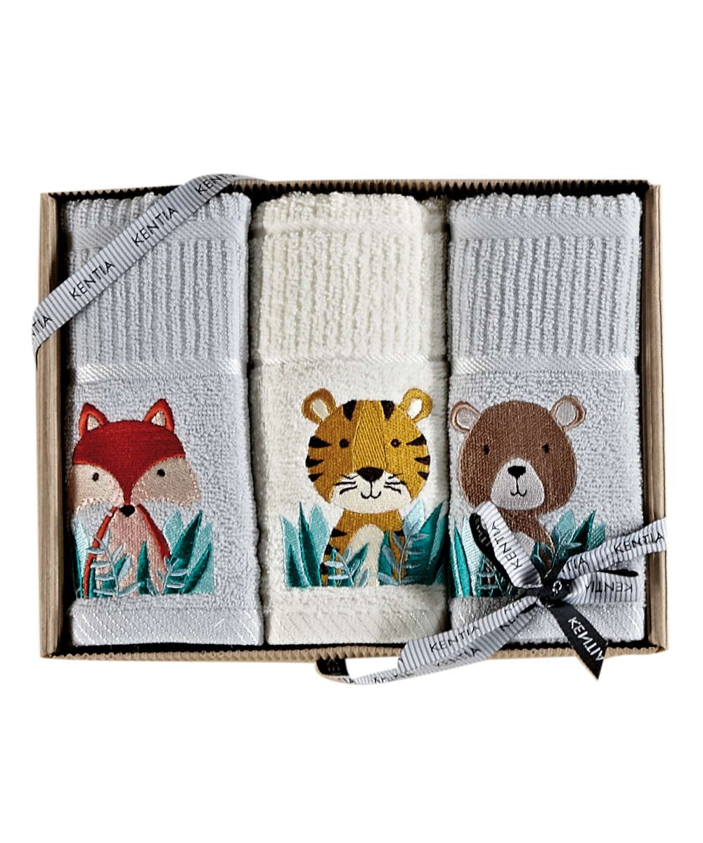 Πετσέτες βρεφικές σετ 3 τεμαχίων (40Χ70), σε συσκευασία δώρου (κουτί), κατασκευασμένες από 100% βαμβακερά νήματα 360gr/m2. Είναι διακοσμημένες με κέντημα. Εξαιρετικά απορροφητικές, απαλές για το δέρμα του μωρού και ανθεκτικές στις συχνές πλύσεις. Ενδείκνυται Πλύσιμο στους 40°C.