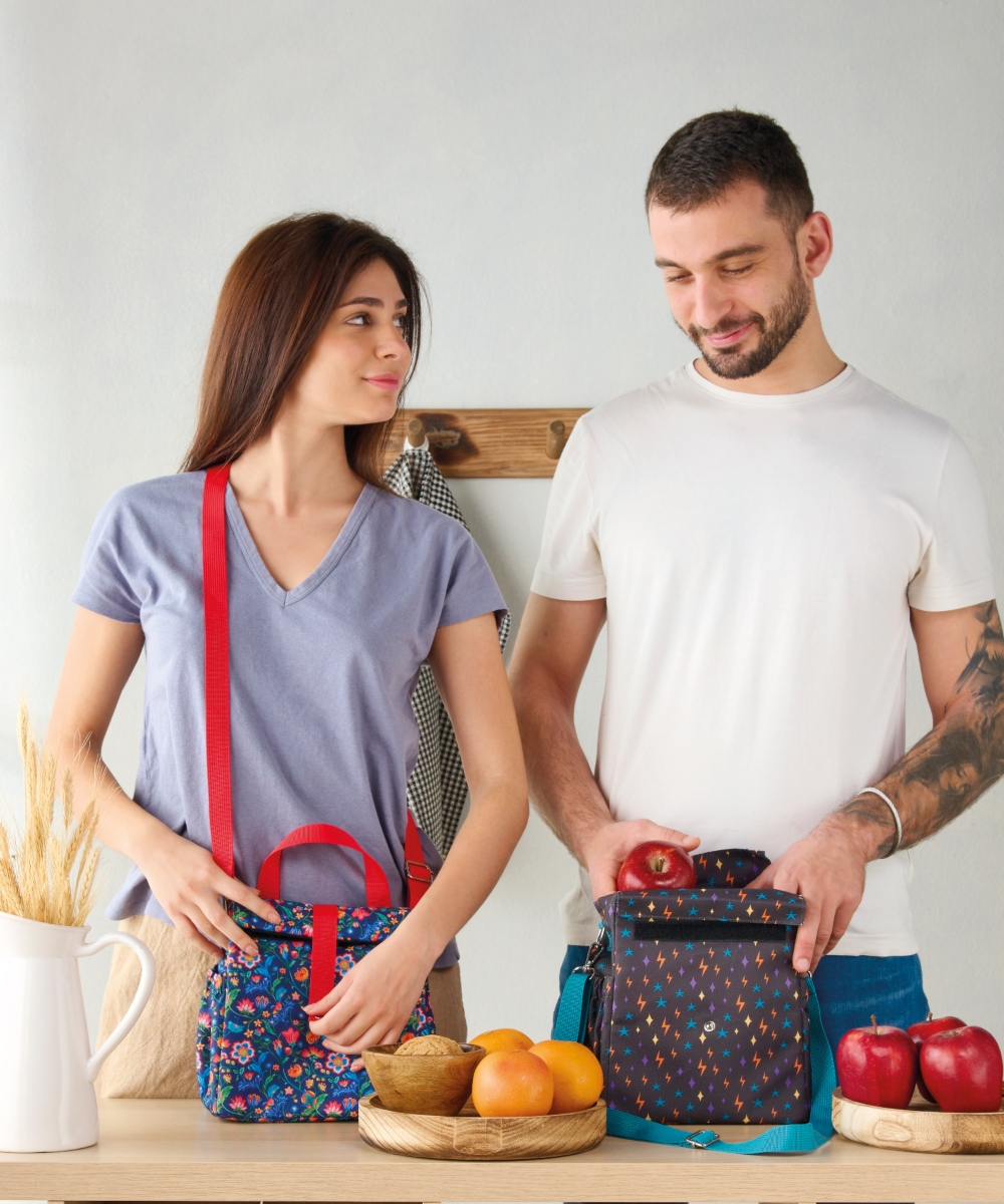 Πρακτικό και μοντέρνο τσαντάκι φαγητού. Απαραίτητο για να καλύψει τις καθημερινές μας ανάγκες αλλά να ικανοποιήσει και την διάθεση μας για την μόδα και την αισθητική. Ιδανικό για δουλειά, σχολείο, εκδρομή, παραλία. Διαθέτει ισοθερμική επένδυση ώστε να διατηρεί αμετάβλητη την θερμοκρασία του φαγητού για αρκετές ώρες και ρυθμιζόμενο λουρί ώμου.
