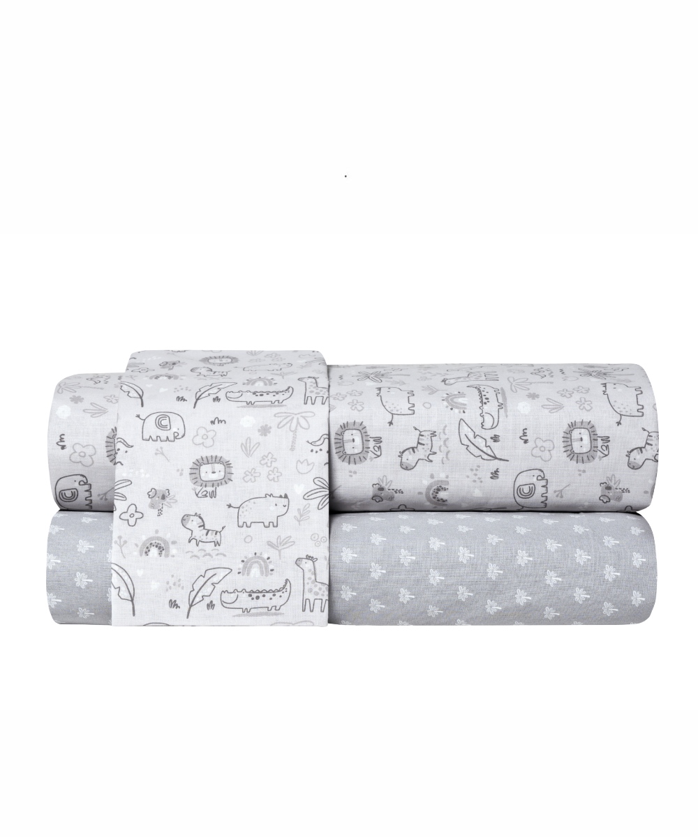 Σετ 3 τεμαχίων σεντόνια κούνιας (κατωσέντονο, πανωσέντονο και μαξιλαροθήκη), κατασκευασμένα με ύφασμα από 100% βαμβακερά νήματα πυκνότητας 150 κλωστών (150 TC), ανθεκτικά στην καθημερινή χρήση και στις συχνές πλύσεις, υποαλλεργικά, μαλακά στην αφή και με απαλή αίσθηση για το δέρμα του μωρού. Ενδείκνυται Πλύσιμο στους 40°C.