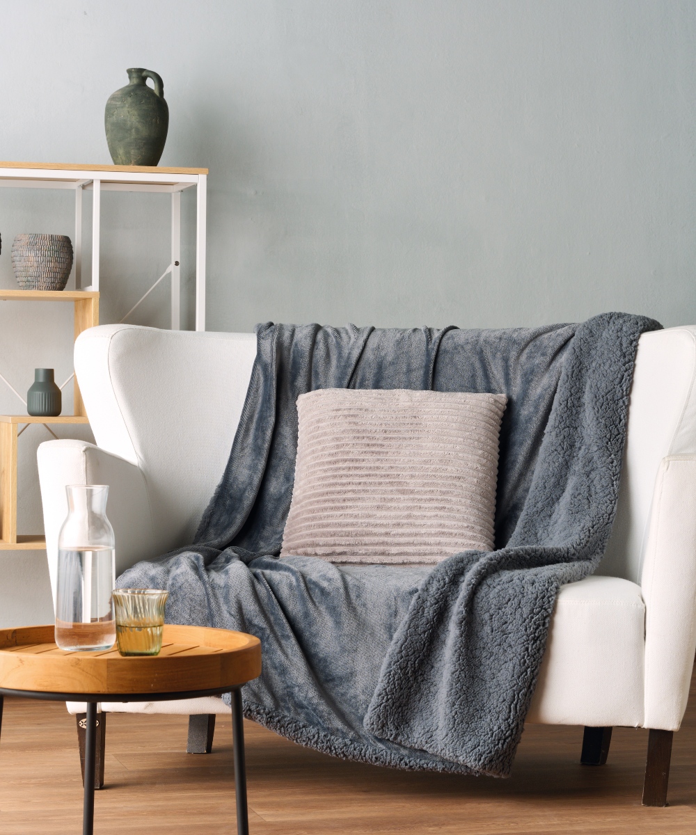 Κουβέρτα Διπλής Όψης Βελουτέ Fleece & Sherpa. Από τη μία πλευρά διαθέτει βελουτέ fleece, απαλό και λαμπερό στην υφή, που χαρίζει κομψότητα και ζεστασιά. Από την άλλη πλευρά υπέροχη αφράτη sherpa που προσφέρει φιλική αίσθηση στο δέρμα, θυμίζει μαλακό πρόβατο, προσφέρει ζεστασιά και θαλπωρή ακόμη και τις πιο κρύες μέρες του χειμώνα. Ιδανική για τον καναπέ ή το κρεβάτι, αυτή η κουβέρτα συνδυάζει αισθητική πολυτέλεια και πρακτικότητα. Ελαφριά, ανθεκτική και εύκολη στη συντήρηση, αποτελεί την τέλεια επιλογή για cozy στιγμές στο σπίτι. Ενδείκνυται Πλύσιμο στους 40°C.