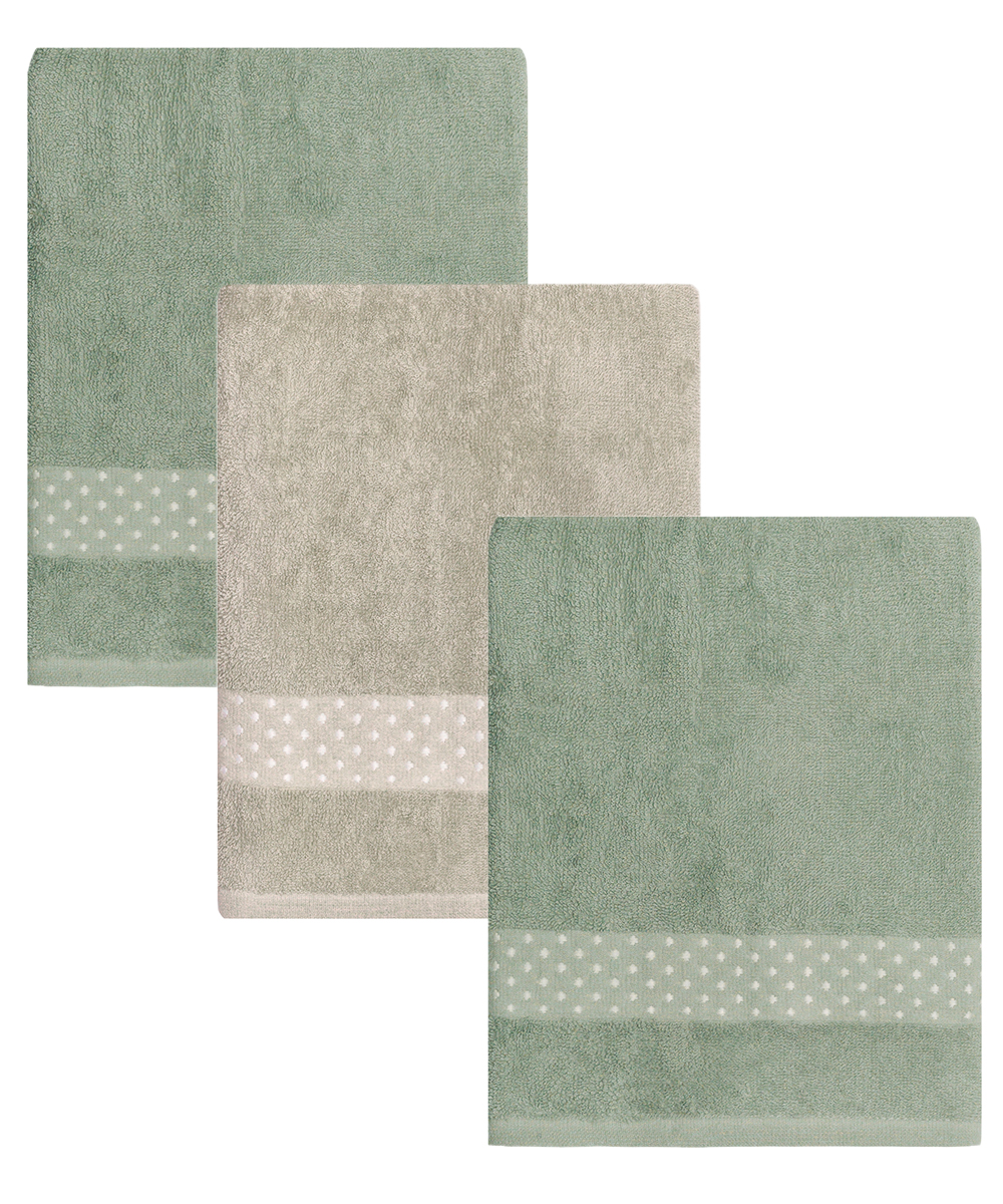 Πετσέτες μπάνιου σετ 3 τεμαχίων, κατασκευασμένες από 100% βαμβακερά νήματα 360gr/m². Προσφέρουν ευχάριστη αίσθηση απαλότητας, γρήγορη απορρόφηση υγρασίας και αντοχή στη συχνή χρήση. Ενδείκνυται πλύσιμο στους 40°C.
