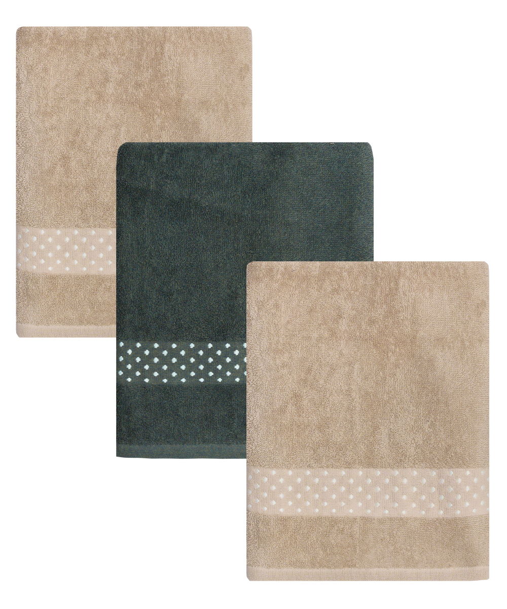 Πετσέτες μπάνιου σετ 3 τεμαχίων, κατασκευασμένες από 100% βαμβακερά νήματα 360gr/m². Προσφέρουν ευχάριστη αίσθηση απαλότητας, γρήγορη απορρόφηση υγρασίας και αντοχή στη συχνή χρήση. Ενδείκνυται πλύσιμο στους 40°C.