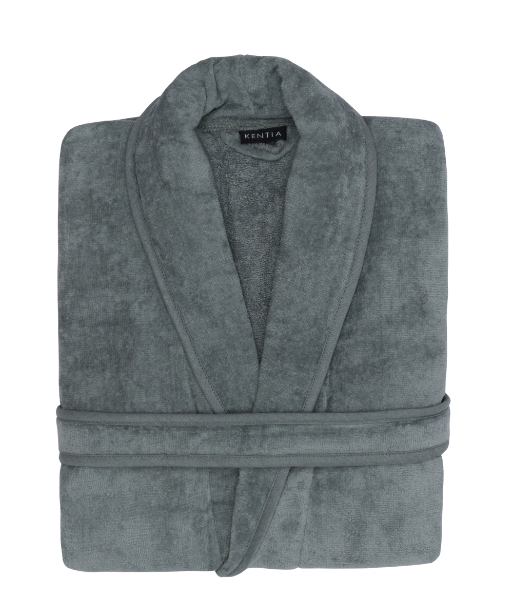 Μπουρνούζι βελούτε με γιακά, κατασκευασμένο από 100% βαμβακερά νήματα 380gr/m². Η βελούδινη υφή του εξωτερικά και η απορροφητική πετσετέ επένδυση εσωτερικά προσφέρουν ζεστασιά και ευχάριστη αίσθηση μετά το μπάνιο. Ο κομψός γιακάς και η κλασική γραμμή του το καθιστούν ιδανικό για καθημερινή χρήση στο σπίτι, το σπα ή το γυμναστήριο. Ενδείκνυται πλύσιμο στους 40°C.