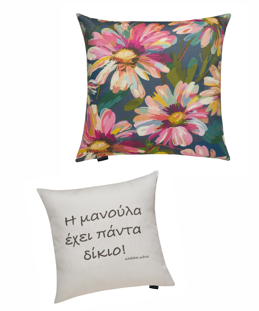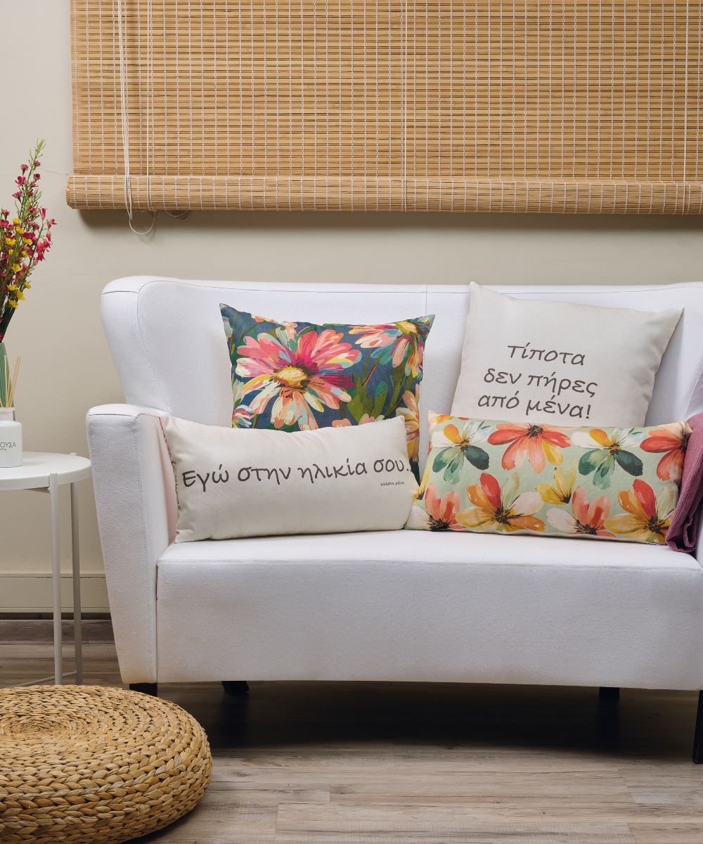 Διακοσμητικό μαξιλάρι με γέμισμα, κατασκευασμένο από PANAMA DUCK μεικτό (βαμβάκι – polyester) ύφασμα. Το ύφασμα αυτής της κατηγορίας γνωστό και ως καμβάς είναι εξαιρετικής ποιότητας, υψηλής αντοχής με απλή όμορφη υφή και πολύ απαλή αίσθηση. Ενδείκνυται πλύσιμο στους 40°C.