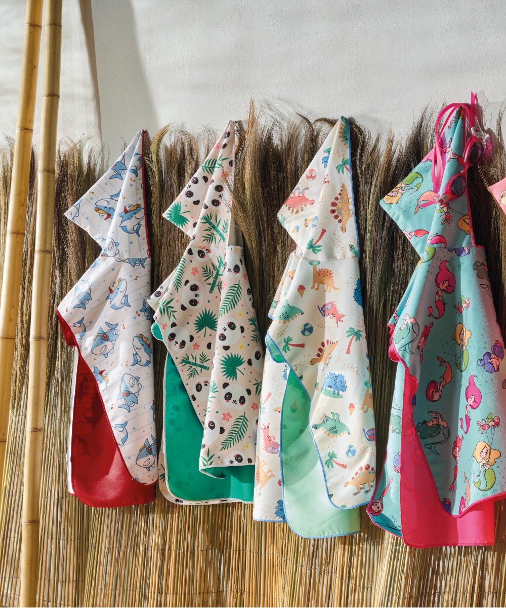 Παιδικό poncho κατασκευασμένο από από μικροϊνες (microfiber). Εξαιρετικά απορροφητικό, ελαφρύ, με ελάχιστο όγκο, μοναδικό για την προστασία των παιδιών από τον ήλιο κατά την παραμονή τους στην θάλασσα. Στεγνώνει γρήγορα και είναι πολύ ανθεκτικό.