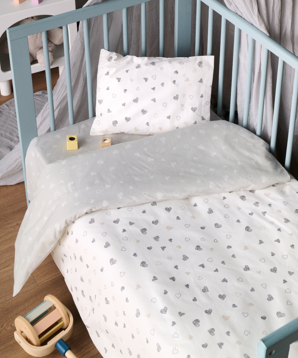 Σετ 2 τεμαχίων παπλωματοθήκη κούνιας (1 παπλωματοθήκη και 1 μαξιλαροθήκη), κατασκευασμένα με ύφασμα από 100% βαμβακερά νήματα πυκνότητας 150 κλωστών (150 TC), ανθεκτικά στην καθημερινή χρήση και στις συχνές πλύσεις, υποαλλεργικά, μαλακά στην αφή και με απαλή αίσθηση για το δέρμα του μωρού. Ενδείκνυται Πλύσιμο στους 40°C.