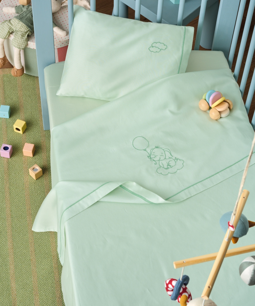 Σετ 3 τεμαχίων σεντόνια κούνιας (κατωσέντονο, πανωσέντονο και μαξιλαροθήκη), κατασκευασμένα με ύφασμα από 100% βαμβακι σατέν νήματα πυκνότητας 300 κλωστών (300 TC), ανθεκτικά στην καθημερινή χρήση και στις συχνές πλύσεις, υποαλλεργικά, μαλακά στην αφή και με απαλή αίσθηση για το δέρμα του μωρού. Το πανωσεντονο και η μαξιλαροθήκη έχουν διακριτικό κέντημα. Ενδείκνυται Πλύσιμο στους 40°C.