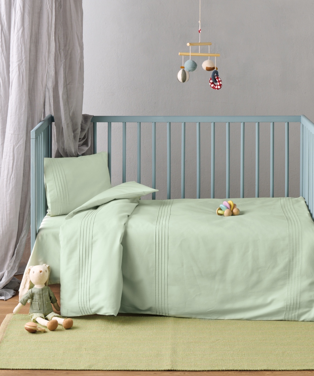 Βρεφική παπλωματοθήκη κούνιας με πιέτα σετ 2 τεμαχίων, κατασκευασμένη από 100% βαμβάκι σατέν 300 TC. Το υψηλής ποιότητας βαμβάκι σατέν χαρίζει απαλή, μεταξένια υφή και φυσική απαλότητα στο δέρμα του μωρού και η πιέτα προσθέτει κομψότητα και στιλιστική λεπτομέρεια. Ιδανική για ανανέωση της βρεφικής κρεβατοκάμαρας με άνεση και στυλ. Ενδείκνυται πλύσιμο στους 40°C.