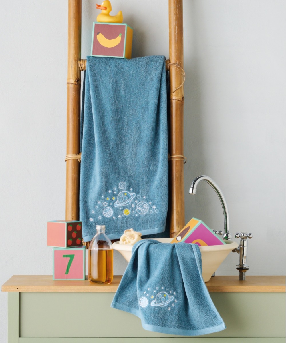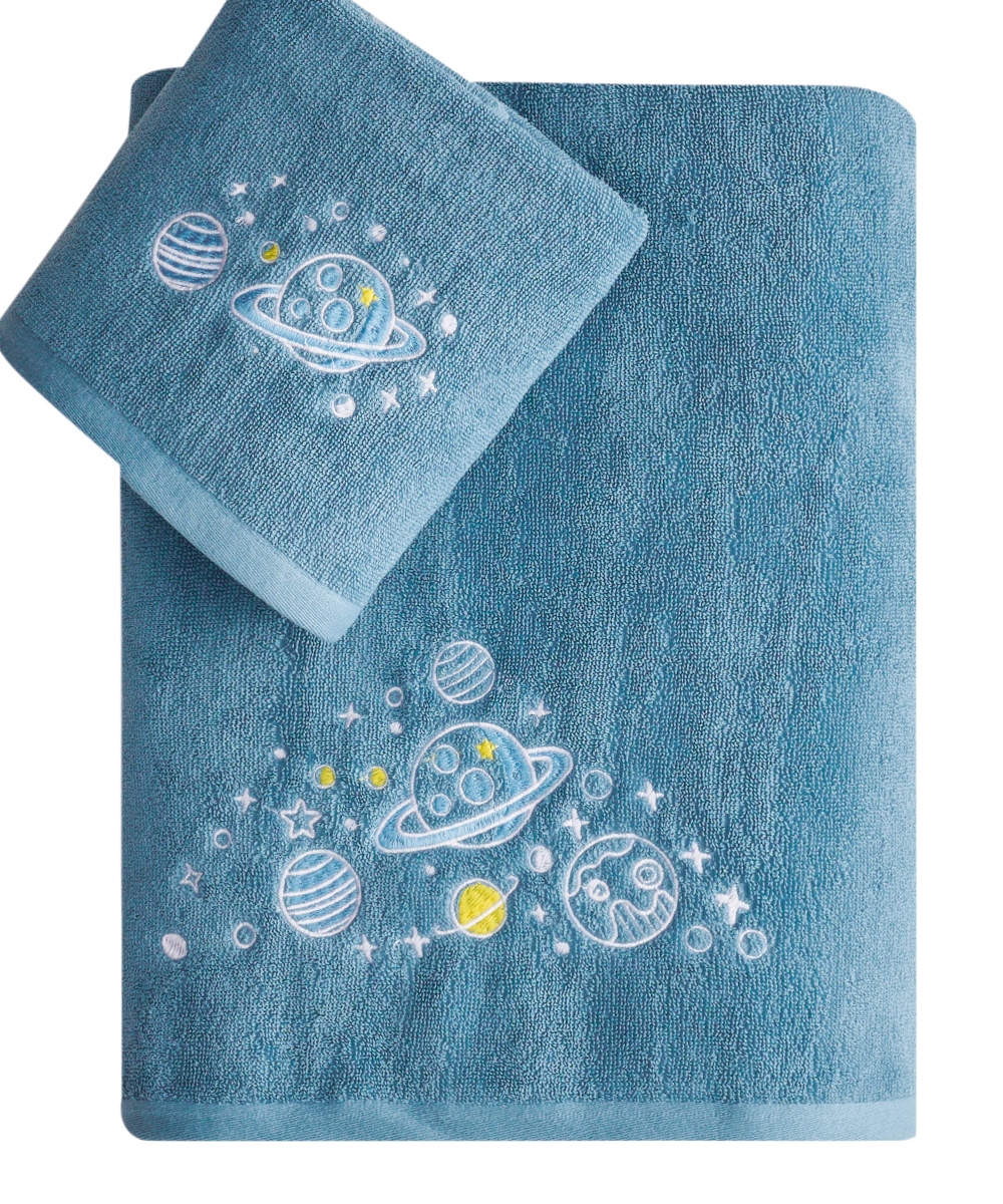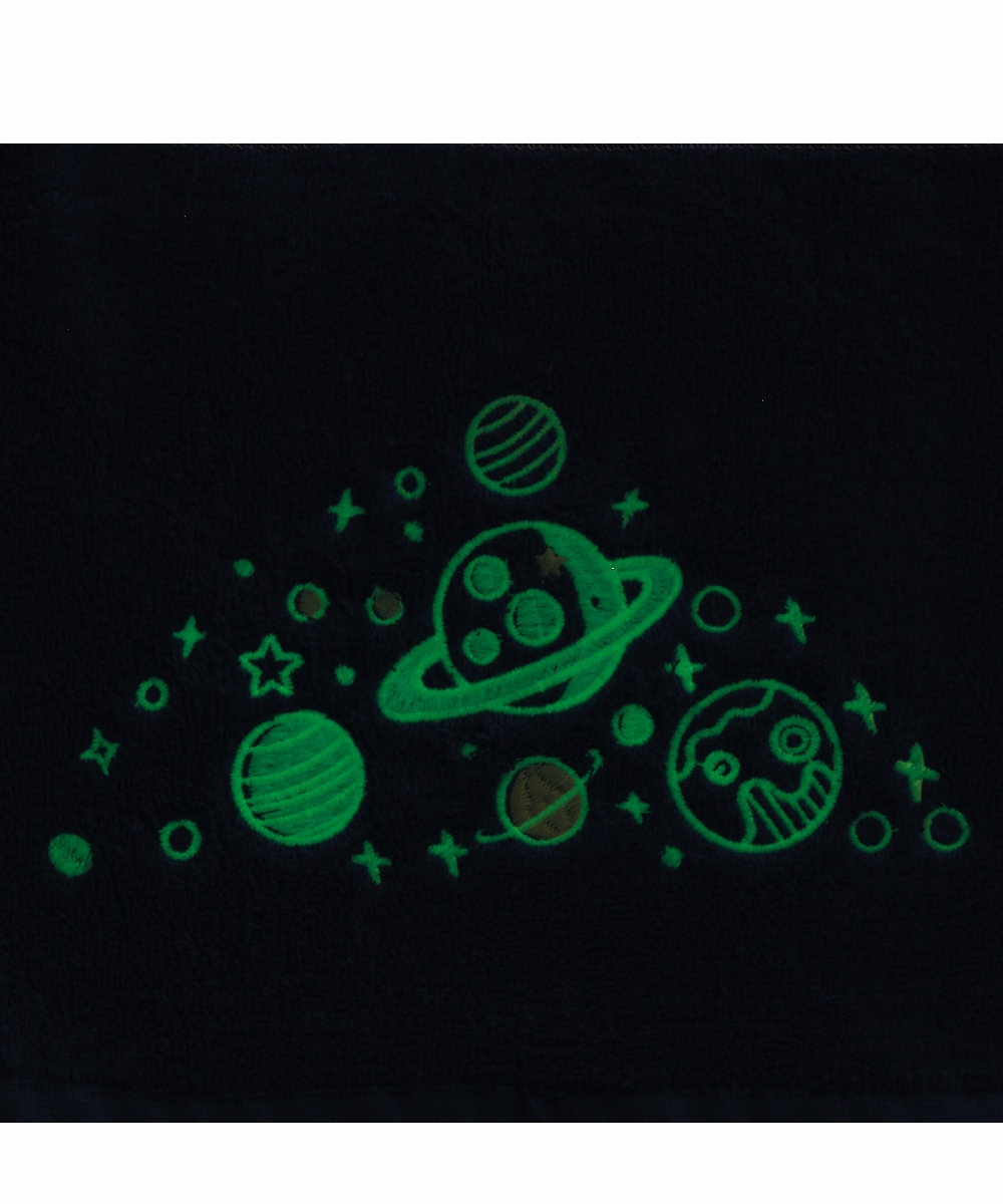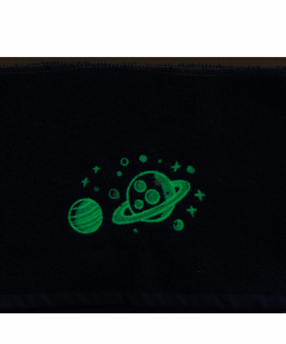 Βρεφικές πετσέτες σετ 2 τεμαχίων (Σώματος-Προσώπου), κατασκευασμένες από 100% βαμβακερά νήματα 450gr/m² για μοναδική απαλότητα και φροντίδα στο ευαίσθητο δέρμα του μωρού. Είναι διακοσμημένες με κέντημα που φωσφορίζει στο σκοτάδι, προσθέτοντας μια παιχνιδιάρικη και μαγική πινελιά στην καθημερινή ρουτίνα. Ενδείκνυται πλύσιμο στους 40°C.