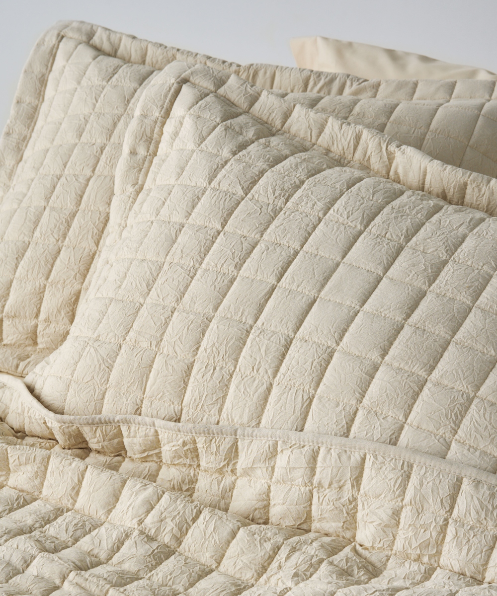 Κουβερτόριο γκοφρέ με πυκνά καπιτονέ σχέδια, από ύφασμα μικροϊνών (microfiber) 100gr/m² με γέμισμα από υποαλλεργικό υλικό 3D hollowfiber βάρους 120gr/m². Εύκολο στη χρήση σαν καθημερινό διακοσμητικό κουβερτόριο, Ενδείκνυται Πλύσιμο στους 40°C.