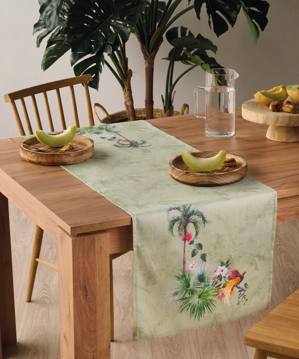 Runner σετ 2 τεμαχίων κατασκευασμένα από PANAMA DUCK μεικτό (βαμβάκι – polyester) ύφασμα. Το ύφασμα αυτής της κατηγορίας γνωστό και ως καμβάς είναι εξαιρετικής ποιότητας, υψηλής αντοχής με απλή όμορφη υφή και πολύ απαλή αίσθηση. Πλένεται στο πλυντήριο στους 40°C.