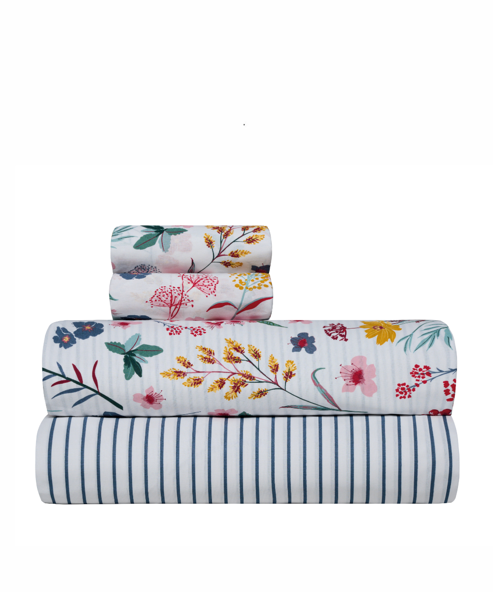 Υπέρδιπλα σεντόνια σετ 4 τεμαχίων (κατωσέντονο, πανωσέντονο και 2 μαξιλαροθήκες). Κατασκευασμένα από 100% βαμβακερό ύφασμα πυκνότητας 150 κλωστών (150 TC) προσφέρουν απαλή υφή, φυσική αναπνοή και τέλεια αίσθηση για όλες τις εποχές. Ιδανικά για καθημερινή χρήση χάρη στην ανθεκτικότητά του υφάσματος και εύκολα στη συντήρηση καθώς πλένονται άφοβα στο πλυντήριο. Ενδείκνυται Πλύσιμο στους 40°C.
