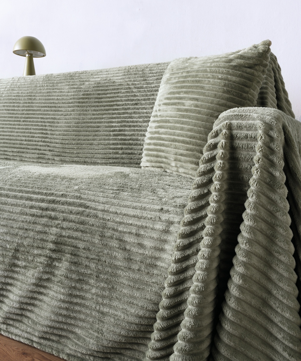Fleece ριχτάρι με ριγέ ανάγλυφο σχέδιο. Τα Fleece υφάσματα είναι χνουδωτά, ζεστά, ελαφριά και ανθεκτικά. Δεν τσαλακώνουν, δεν χάνουν την φόρμα τους και έχουν πολύ μαλακή εμφάνιση και αίσθηση. Κατάλληλα για μια διακόσμηση πιο χαλαρή, πιο καθημερινή με θαλπωρή, ζεστασιά και casual κομψότητα.