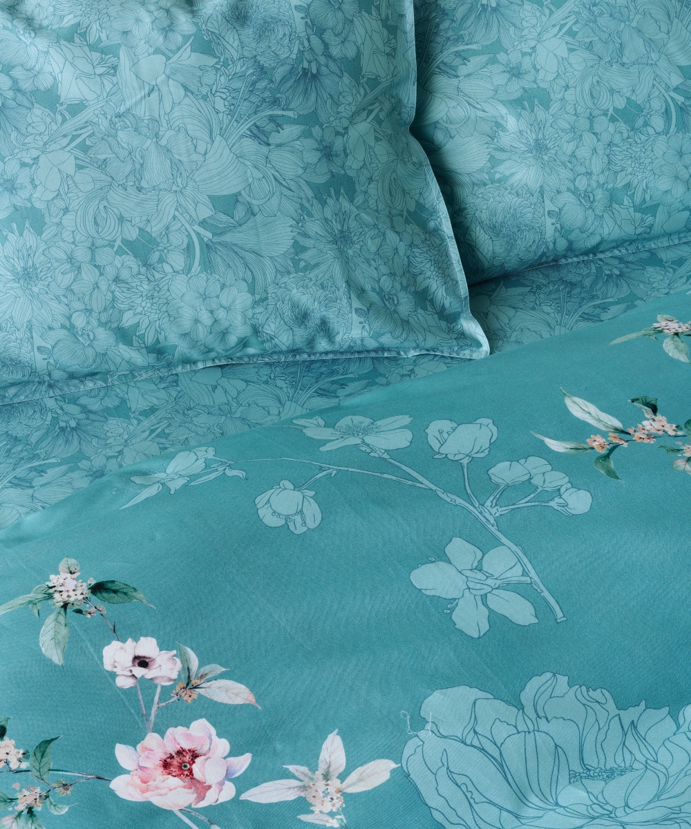 Σετ 3 τεμαχίων (Παπλωματοθήκη υπέρδιπλη και 2 μαξιλαροθήκες), εξαιρετικής ποιότητας βαμβακοσατέν 210 κλωστών (210 TC), με λείο φινίρισμα και απαλή αίσθηση. Το τύπωμα της σειράς αυτής είναι digital με reactive colours· τα χρώματα αυτά δημιουργούν έναν άρρηκτο δεσμό με τις ίνες του βαμβακιού, που τα διατηρεί ανεξίτηλα και λαμπερά με μεγάλη αντοχή ακόμα και μετά από πολλές πλύσεις. Ενδείκνυται Πλύσιμο στους 40°C.