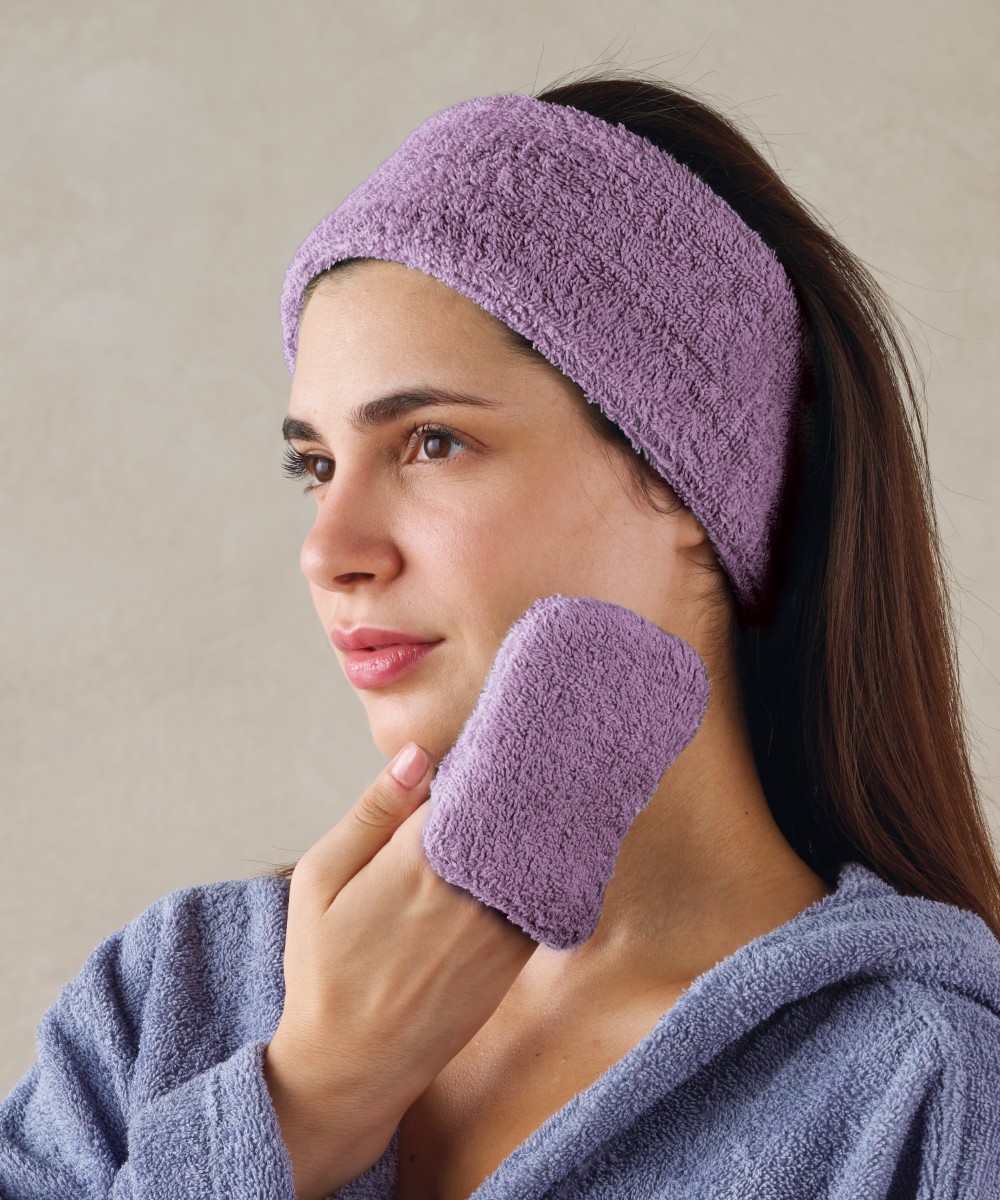 Κορδέλα Μαλλιών, κατασκευασμένη από 100% βαμβακερά νήματα 450gr/m², ιδανική για χρήση μετά το μπάνιο ή κατά τη διάρκεια της περιποίησης προσώπου προσφέρει εξαιρετική απαλότητα, απορροφητικότητα και αντοχή, κρατώντας τα μαλλιά σταθερά και μακριά από το πρόσωπο. Ενδείκνυται πλύσιμο στους 40°C.