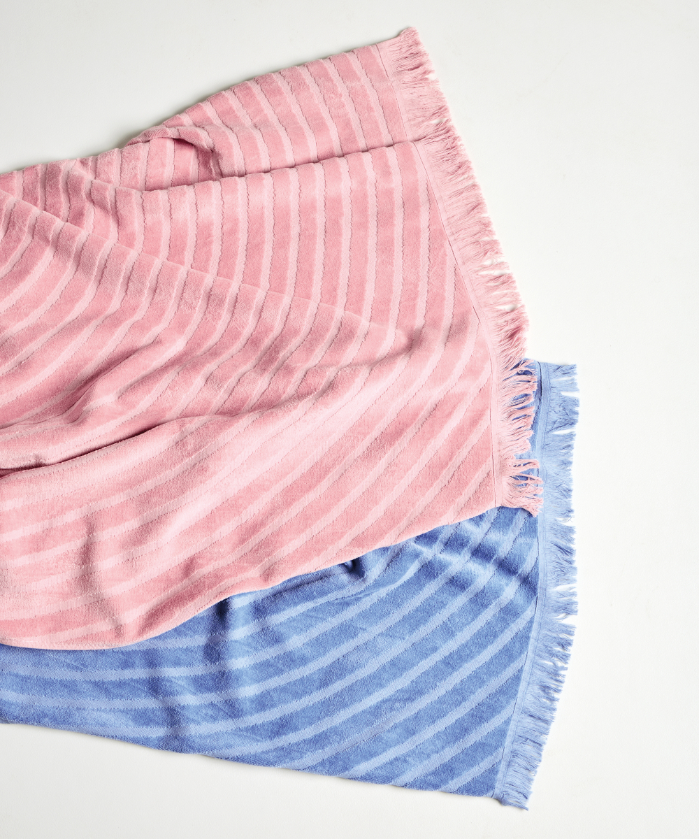 Cotton beach towel, highly absorbent and durable, available in vibrant modern colours that remain unchanged even after long-term use. Recommended washing at 40°C.