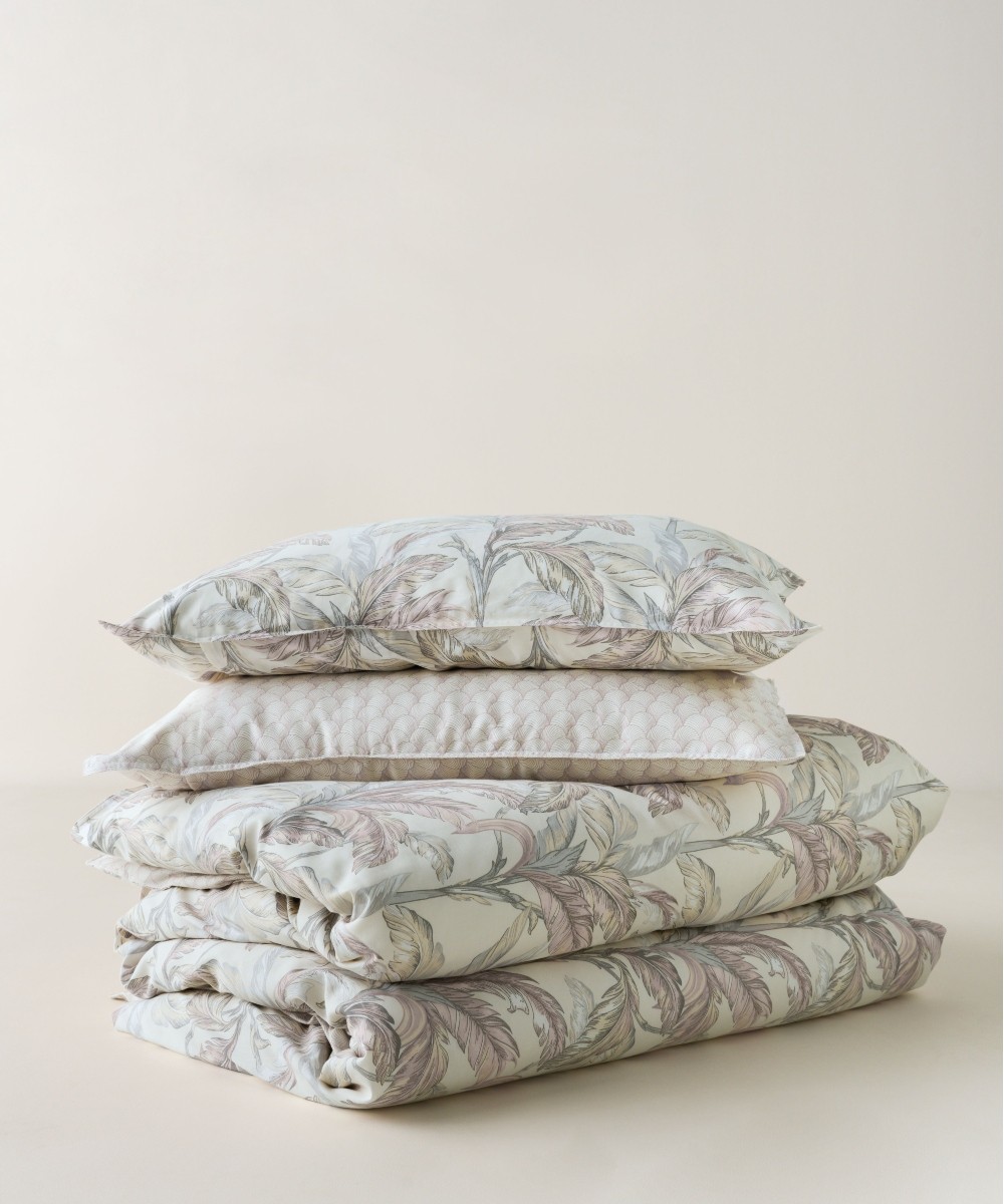 King size sheets set of 4 pieces (top sheet, bottom sheet and 2 pillowcases) made from 100% cotton sateen fabric, 210 thread count (210TC). It features a smooth finish, a soft feel and exceptional durability, maintaining its fresh, like-new feel even after many washes. Recommended washing at 40°C.