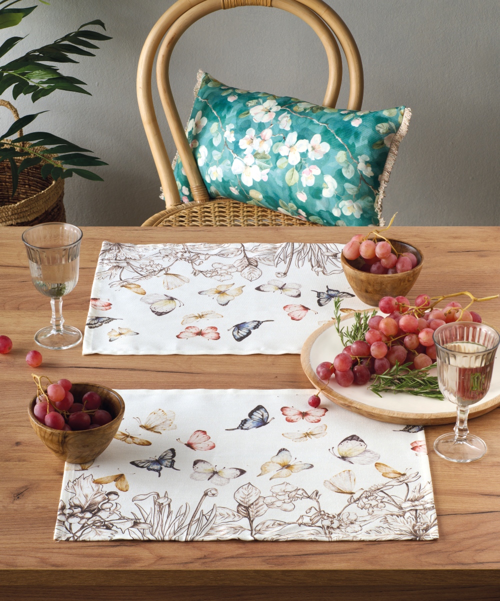 Σουπλά σετ 4 τεμαχίων κατασκευασμένα από PANAMA DUCK μεικτό (βαμβάκι – polyester) ύφασμα. Το ύφασμα αυτής της κατηγορίας γνωστό και ως καμβάς είναι εξαιρετικής ποιότητας, υψηλής αντοχής με απλή όμορφη υφή και πολύ απαλή αίσθηση. Πλένεται στο πλυντήριο στους 40°C.