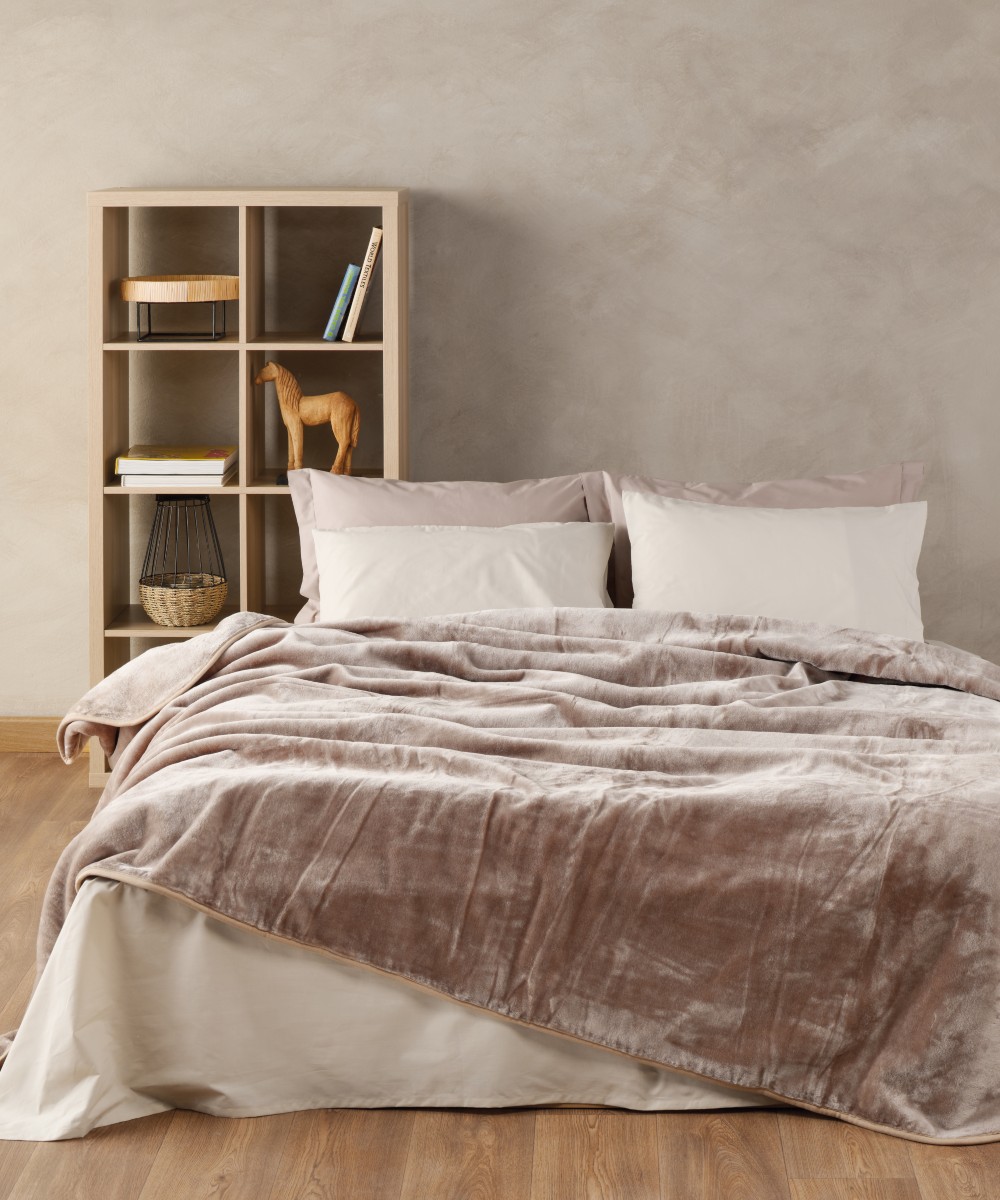 Κουβέρτα βελουτέ King, κατασκευασμένη από 100% πολυεστέρα υψηλής ποιότητας 650gr/m², προσφέρει υπέροχη απαλότητα, ζεστασιά και μεταξένια υφή, ιδανική για τους κρύους μήνες του χρόνου. Ανθεκτική και εύκολη στη συντήρηση, χαρίζει κομψότητα και άνεση σε κάθε υπνοδωμάτιο. Ενδείκνυται πλύσιμο στους 40°C.