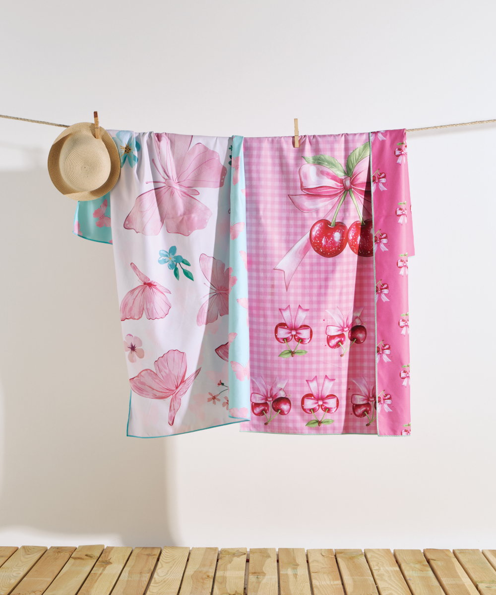 Microfiber beach towel, exceptionally absorbent, very lightweight and thin with minimal bulk, offering outstanding color performance. Dries quickly and is highly durable. Recommended for machine wash at 40°C.