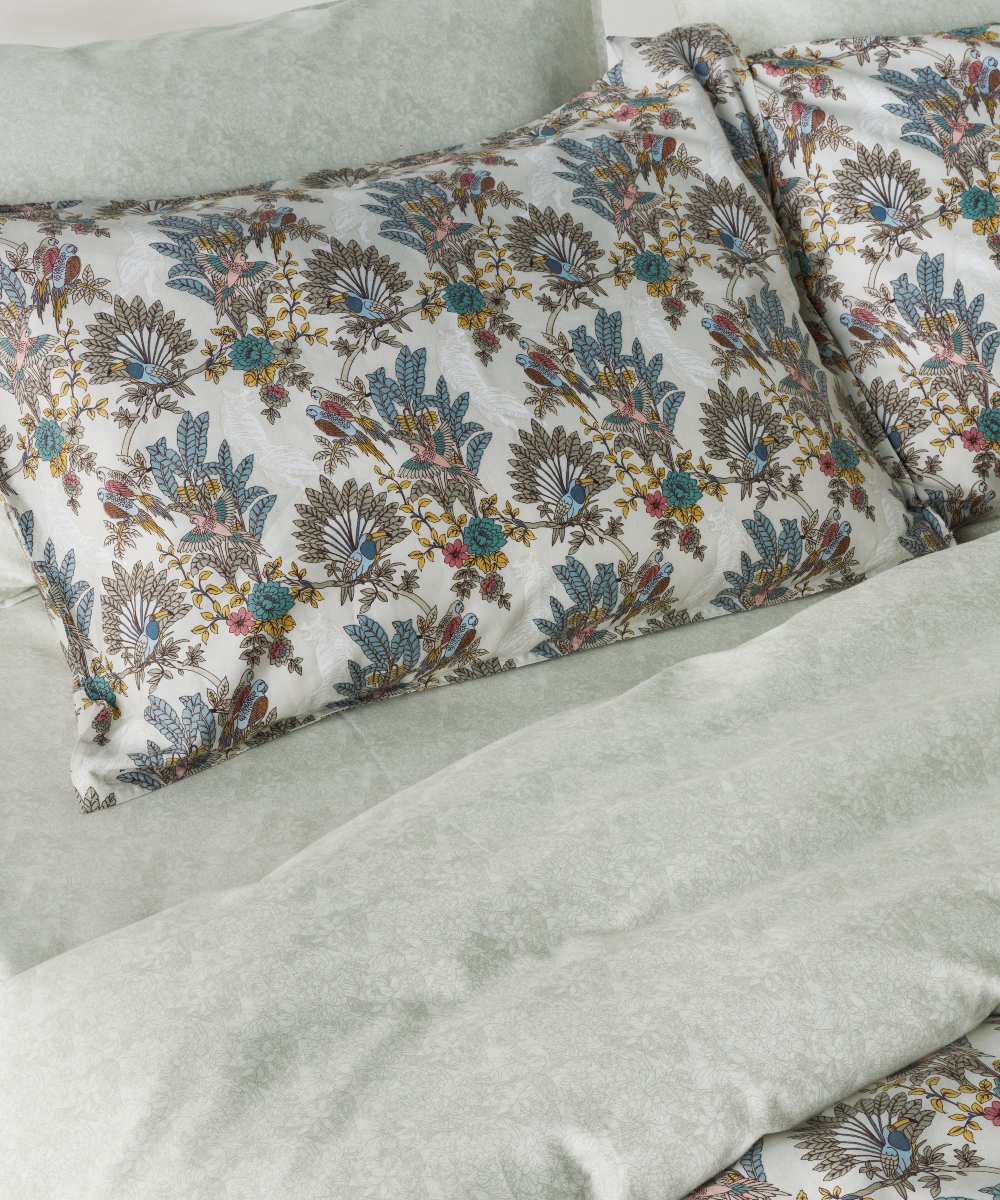 King size sheets set 4 pieces (top sheet, bottom sheet and 2 pillowcases) made from 100% cotton sateen fabric, 210 thread count (210TC). It features a smooth finish, a soft feel and exceptional durability, maintaining its fresh, like-new feel even after many washes. Recommended washing at 40°C.