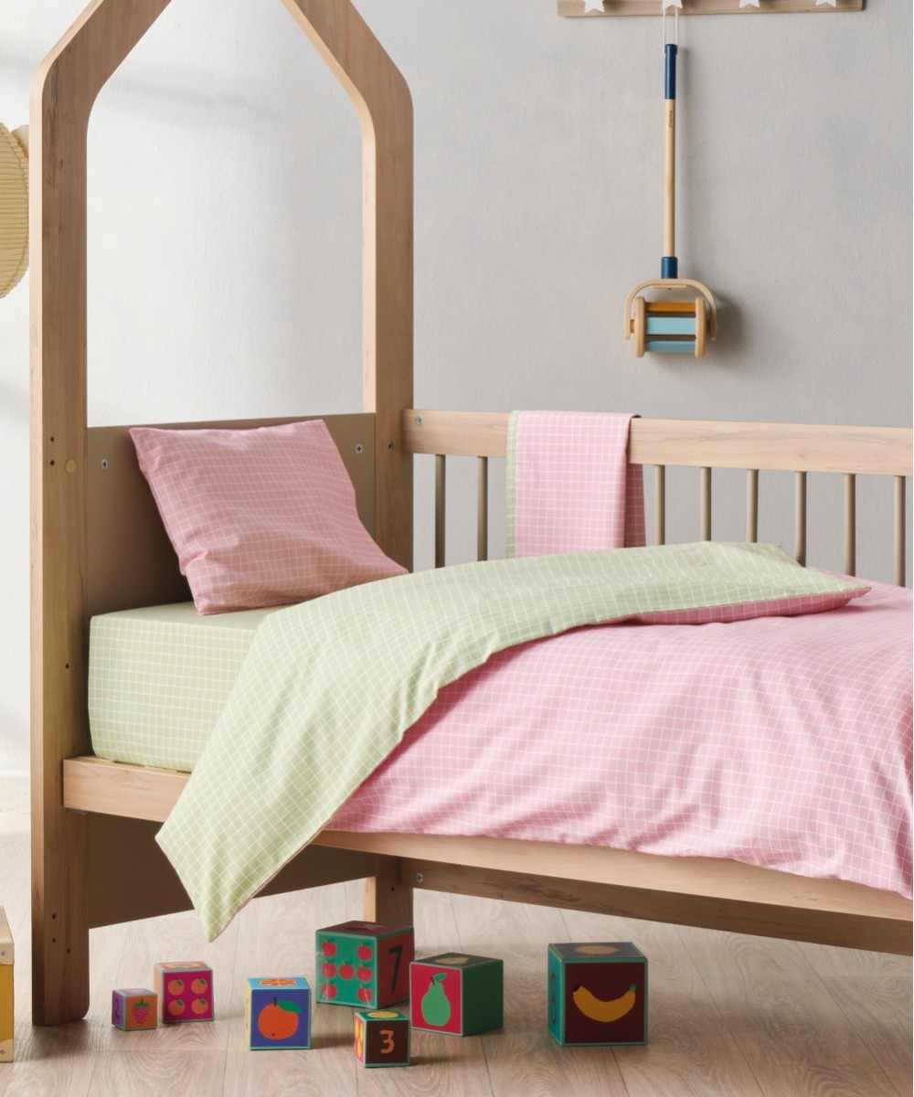Σετ 2 τεμαχίων σεντόνια Λίκνου (1 κατωσέντονο και 1 πανωσέντονο), κατασκευασμένα με ύφασμα από 100% βαμβακερά νήματα πυκνότητας 150 κλωστών (150 TC) , ανθεκτικά στην καθημερινή χρήση και στις συχνές πλύσεις, υποαλλεργικά, μαλακά στην αφή και με απαλή αίσθ